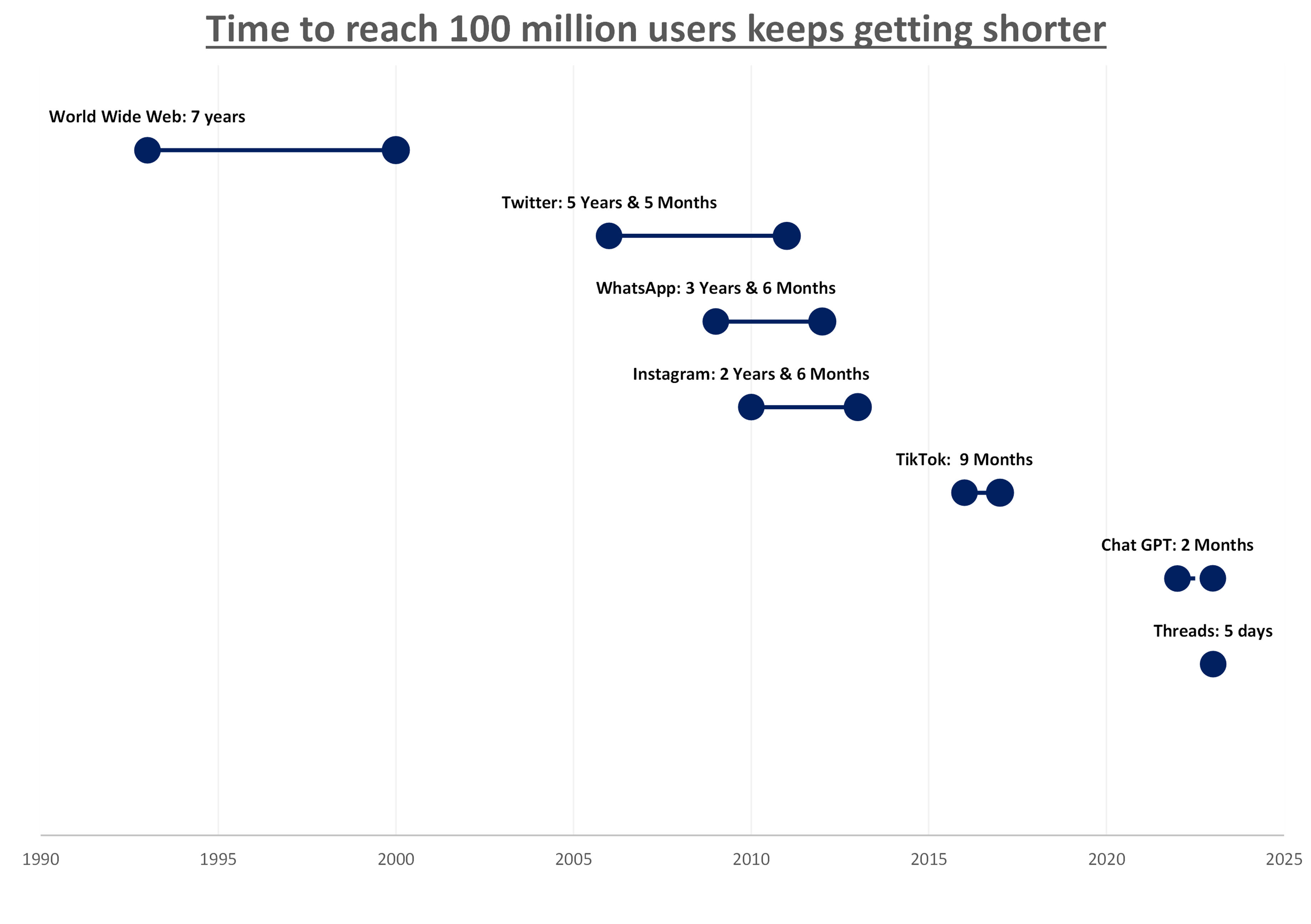 Disruption is getting faster; this graphic shows how the adoption of new technology is accelerating:
