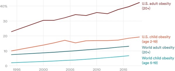 Obesity is a growing problem affecting four in ten Americans, which carries an increased risk of comorbid and chronic conditions such as type two diabetes, cancer and heart disease.