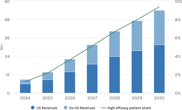 The annual market for obesity drugs is forecast to expand from US$2.4 billion in 2022 to US$54 billion by 2030.2