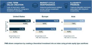 Private markets have outperformed public markets across 10 and 20 year time horizons, across multiple geographies such as US, UK, China.