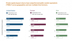 (2) Sources: MSCI, S&P and BURGISS (BURGISS data as of March 31, 2021, downloaded July 21, 2021). United States returns are stated in USD. Europe returns include investments with a focus on the developed world and are stated in EUR. Asia returns include private equity expansion capital investments and are stated in USD. All “Public Market Equivalent” returns were calculated using the Long-Nickels methodology and were obtained from Burgiss. All data shown as net to Limited Partners, unless otherwise noted. Pooled Return (LP): The pooled IRR calculation uses pooled cash flows over the specific horizon period, meaning the data for the funds are aggregated and the return is calculated on the single stream of aggregate cash flows. No assurance can be given that any investment will achieve its objectives or avoid losses. Past performance is not necessarily indicative of any future results.