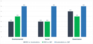 This lack of consistency even extends to the established and highly-regarded ESG rating agencies, who often show vastly different views when assessing the same criteria. Using the Tesla stock as an example, Chart 1 shows variation in the ESG assessment by some of the most influential rating companies in this space: